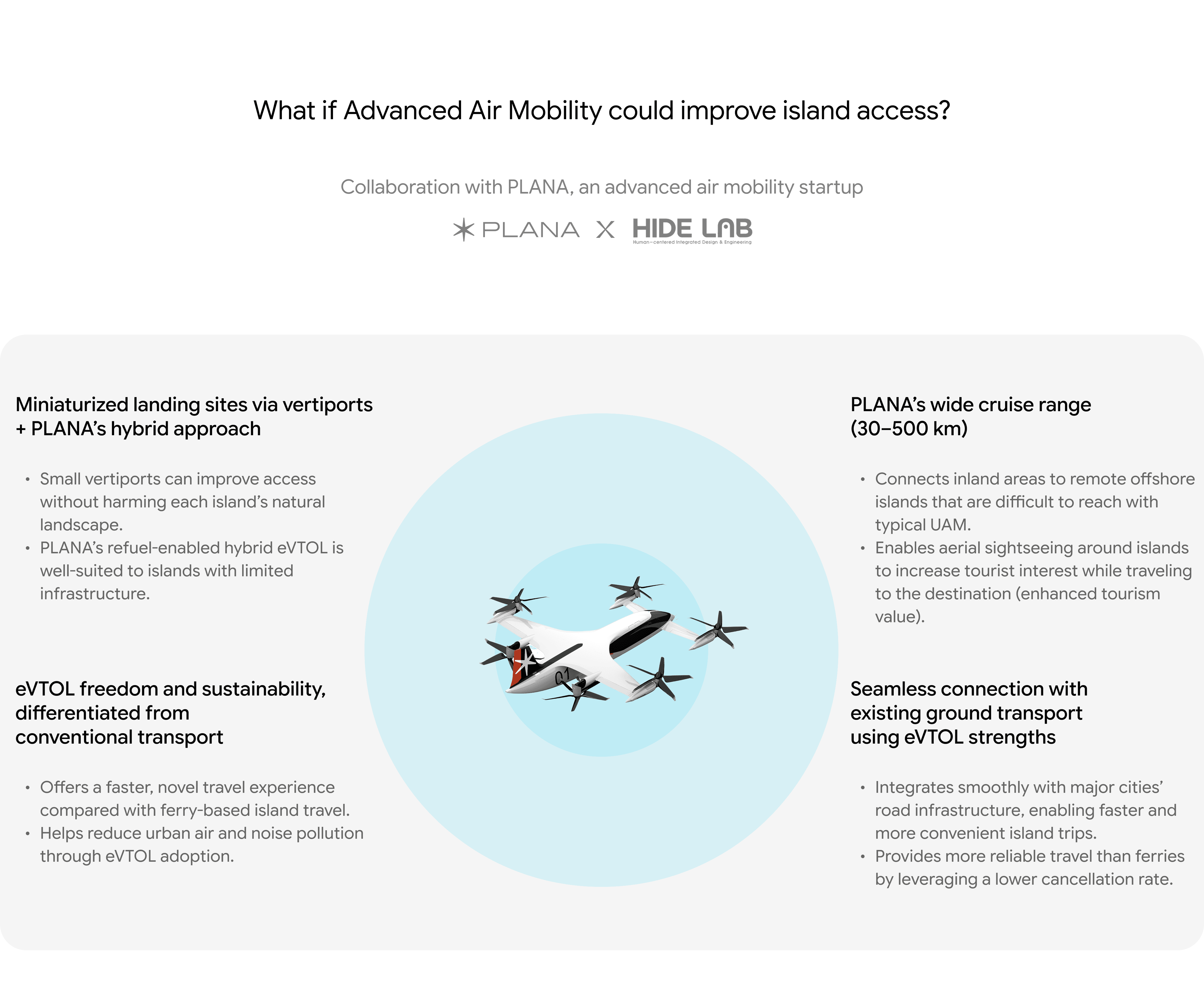 Post-COVID, early adopters want island travel but face complex, limited transport options. This project proposes AAM for faster island-to-city mobility. User testing shaped in-cabin convenience features to match their needs.